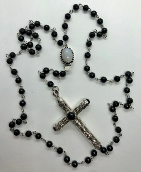Our cocaine necklace movie replica, as seen in the 1999 cult classic, cruel intentions features a full length black onyx beaded rosary and sterling silver cross pendant.