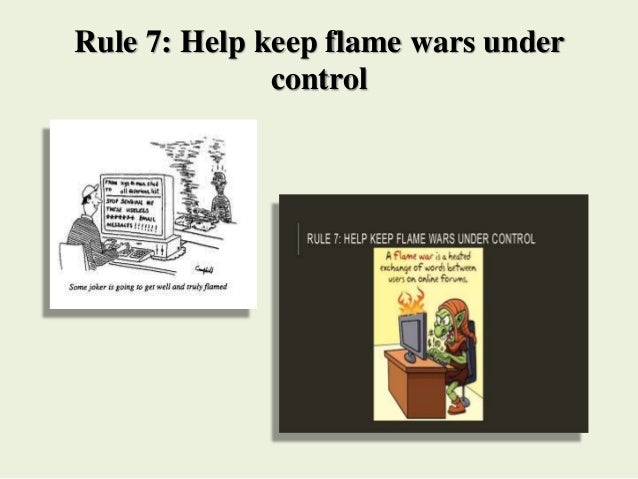 Get Rule 7 Help Keep Flame Wars Under Control Example Background. You never know who is on the other side of the screen they could be fbi, police, or any part. Dalmacioramer9 is waiting for your help.